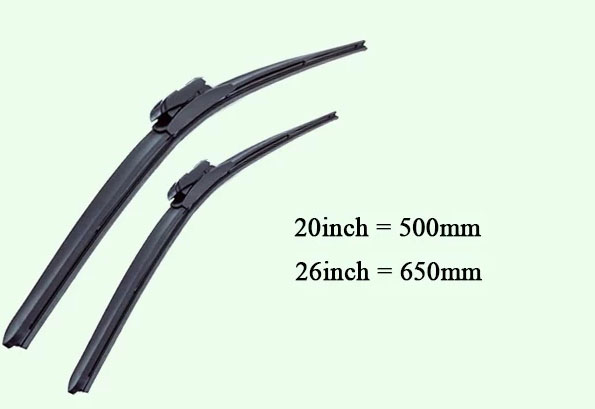 Gạt mưa trước có kích thước 65cm, tương đương 26 inch/ Gạt mưa trước có kích thước 50, tương đương 20 inch.